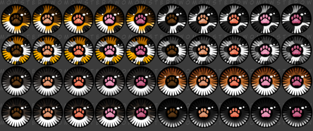 Eyepack V10 : 40 Eye colours with a cat themed design. A lot of toebeans!