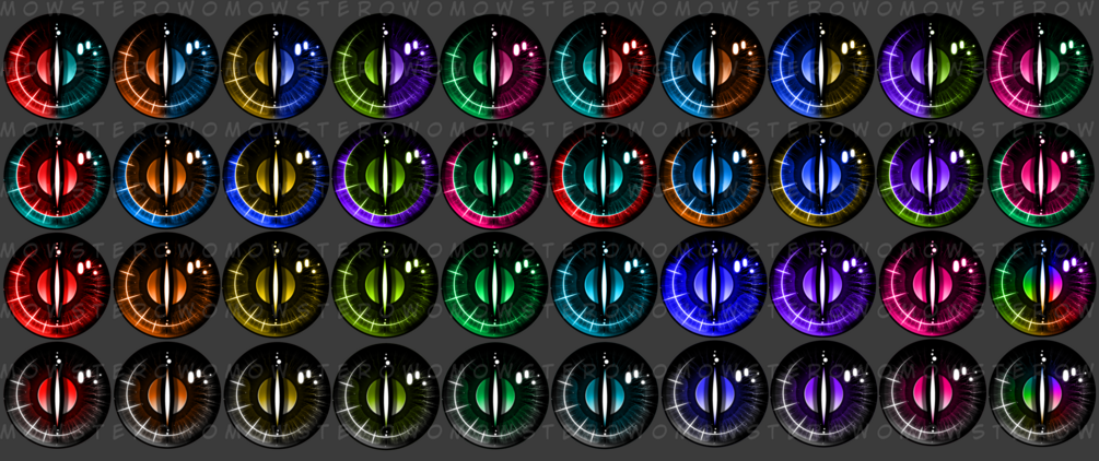 Eye Pack V6 : 82 Eye colours of a demon eye. Half dark half light.